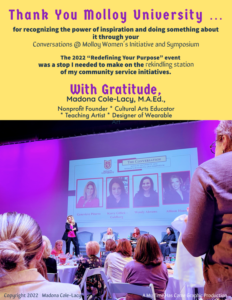 This sentiment comes from my penchant for, and belief in, the limitless, all-inclusive nature of healthy expressions of gratitude. Not unlike kindness, one cannot express too much gratitude, and with that in mind, I shine the spotlight on one of such experiences last year – The Conversation – Molloy University 2022 Women’s Initiative and Symposium.